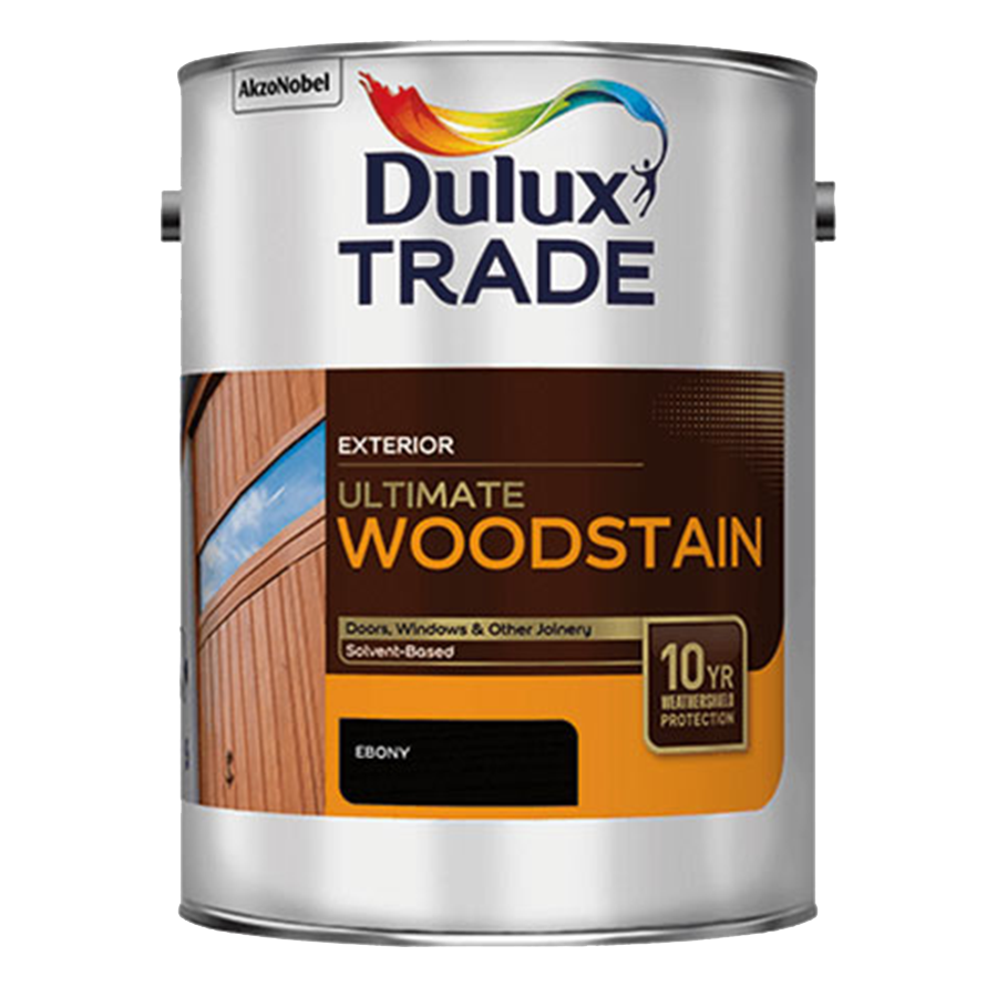 DULUX TRADE ULTIMATE WOODSTAIN is a high performance solvent-based exterior woodstain which produces a water-repellent satin finish. Unique Ultimate wood protection technology from Dulux Trade means exterior joinery is protected from extreme weather for up to 10 years if used in accordance with instructions, and so looks better for longer. Suitable for hardwoods and softwoods.