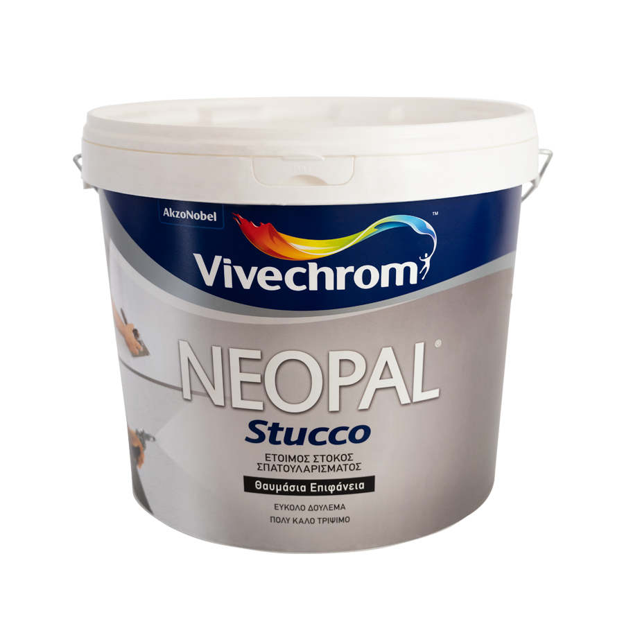 NEOPAL STUCCO is a-ready-to-use liquid putty, for covering and leveling interior walls from plaster, gypsumboarsds and concrete surfaces. It has very good working and leveling properties, as well as an excellent filling capacity. It dries fast and it is very easily sanded. It can be even more easily sanded with a sanding machine, without too much dust, minimizing irritation to eyes and inhaling problems. The result is a very smooth, flat and cohesive surface, ready to be recoated with emulsion or enamel paints.