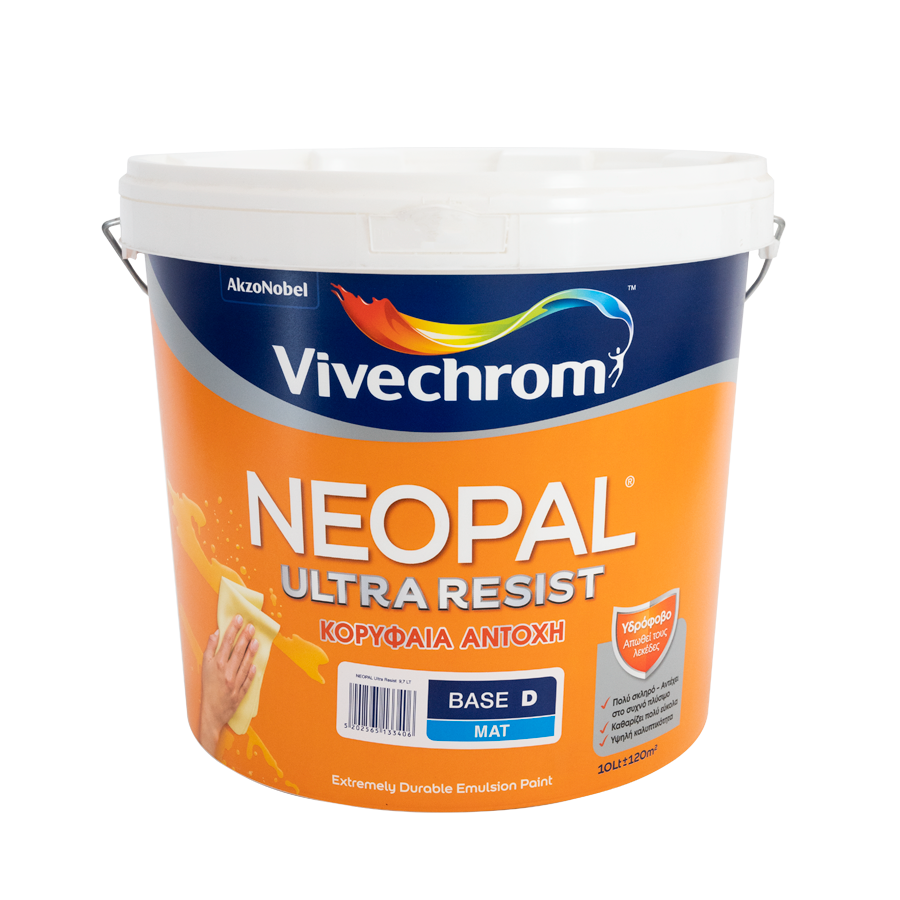 NEOPAL ULTRA RESIST is an extremely durable emulsion paint for interior use. This very tough and exceptionally washable paint (Class 1, EN 13300), creates a hydrophobic film that turns common water-based stains like soft drinks, coffee, wine, mud, etc into beads which sit on top of the paint, rather than soaking in. Therefore, it can be cleaned more easily than common emulsion paint leaving the paint as good as new and your walls stay perfect for longer. It has high coverage and spreading rates, great working and leveling properties and dries quickly. It offers an elegant matt finish.