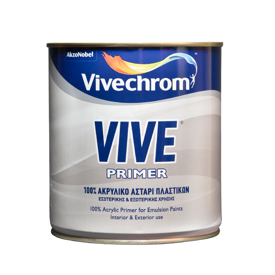VIVE PRIMER 100% Acrylic Primer for Emulsion Paints is a semitransparent waterbased primer for emulsion and acrylic paints. It is suitable for interior and exterior surfaces from plaster, concrete and walls leveled with putty. It has very good adhesion and penetration, great elasticity and durability to the alkaline surfaces, binding the surface effectively. It is applied easily and it has high spreading rate. It facilitates the workability and provides a uniform surface to the final coat. It is available in 750ml, 3lt and 10lt packages.