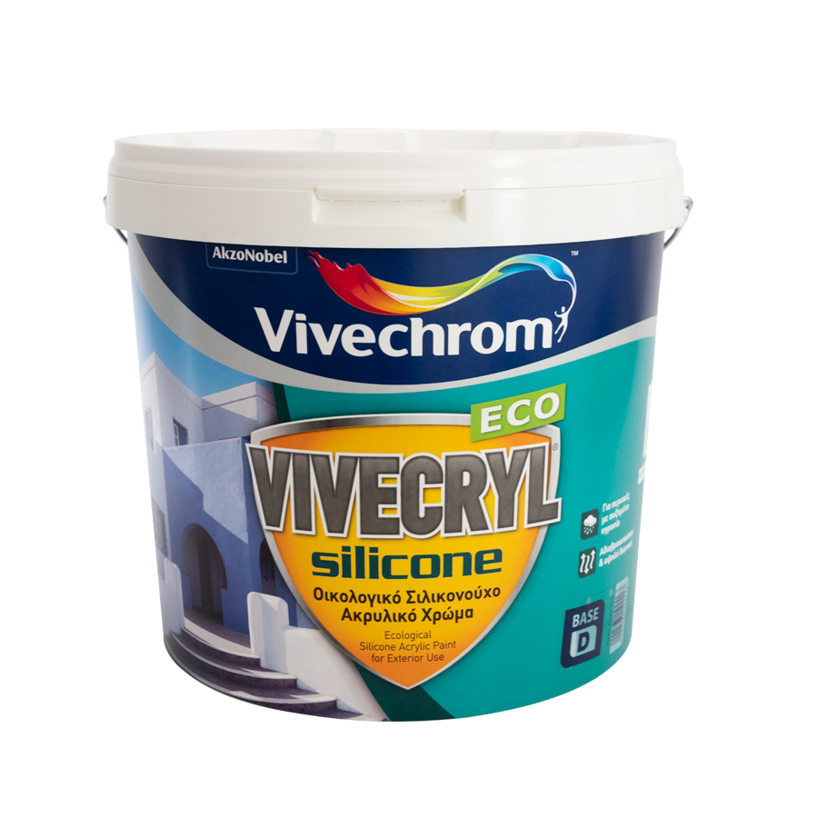 VIVECRYL SILICONE ECO is an acrylic matt paint for exterior use, based on silicon acrylic resins. It is ideal for areas with wet climate and adverse weather conditions (mountainous or close to the sea areas), as it combines water repellence with high water vapour permeability, providing the ability to the water vapour to escape easily. It is particularly recommended for the restoration of historical and traditional buildings. It has excellent working properties, strong adhesion and high hiding power. VIVECRYL SILICONE ECO features a great resistance to weather and sunlight, ensuring outstanding protection for exterior surfaces.