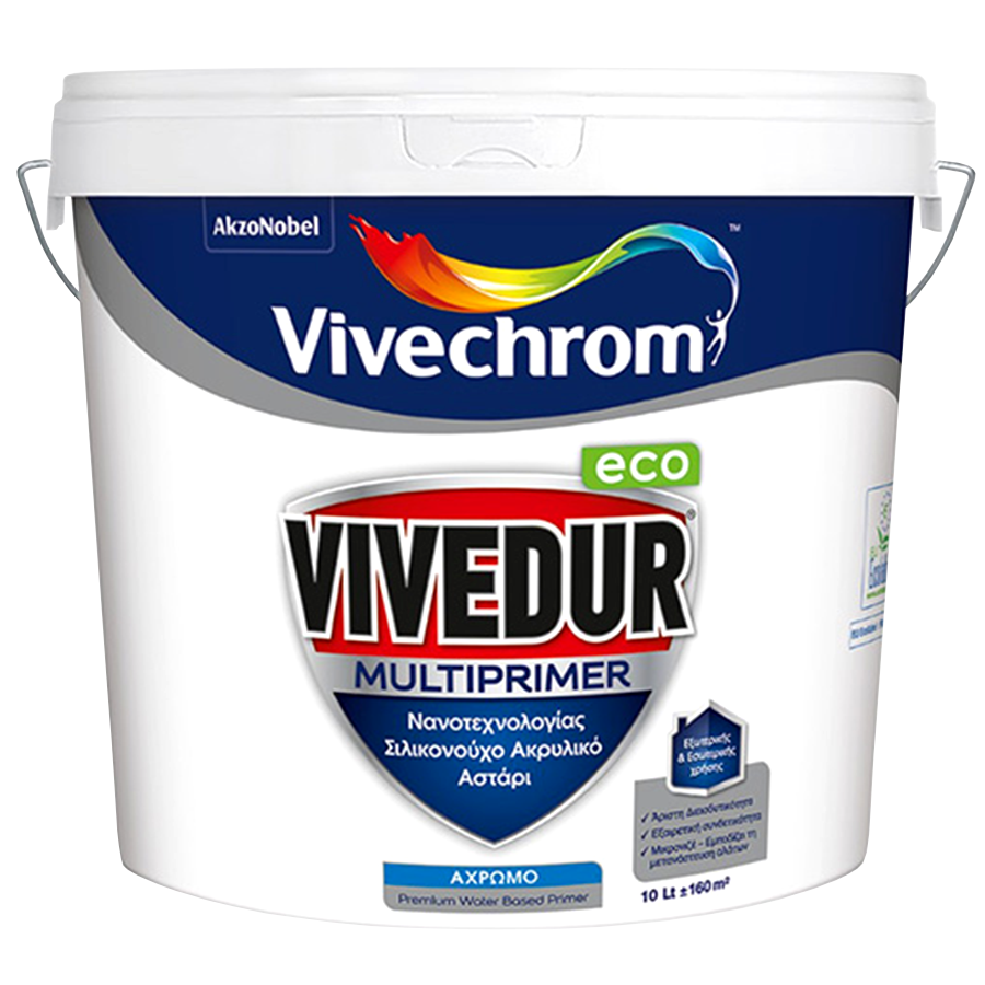 VIVEDUR MULTIPRIMER ECO is silicone acrylic Nanotechnology water based primer, for exterior and interior walls. It is micronized and therefore has increased penetration and stronger adhesion offering excellent cohesion, enhancing porous surfaces such as plaster, concrete, gypsum board, cement boards, stucco, hydrochroma. It is hydrophobic, waterproof and breathable and has very good alkali resistance. It prevents migration of salts from the wall to the top paint film. It has excellent levelling properties and spreads wonderfully. It is an ideal ecological water based primer for surfaces painted with acrylic or plastic water based paints.