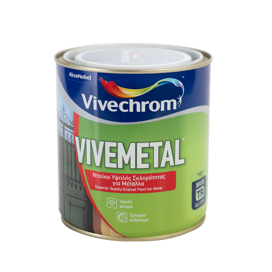 VIVEMETAL is tough and durable enamel paint for metals. It has excellent durability, dries fast and withstands in hits and weather which make VIVEMETAL ideal coating for doors, railings, ironwork, tools, industrial equipment, machinery, as well as any surface where an excellent gloss or satin finish is desired. The excellent quality raw materials give VIVEMETAL a high gloss and shade retention in the most adverse weather conditions. For faster drying and maximum hardness one can add VIVEHARD hardener. It is available in packs of 750mL and 2.5Lt, in white and black, in RAL shades and in unlimited number of shades through VIVECHROM’s tinting system CHROMOSYNTHESIS.