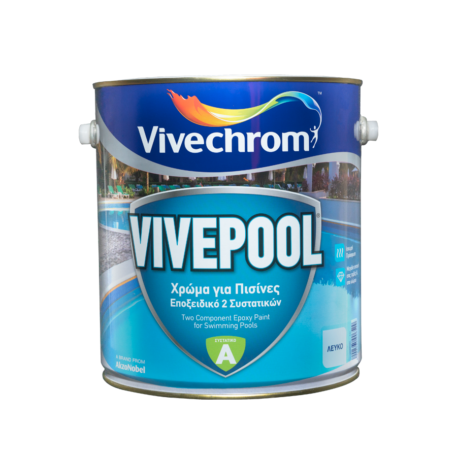 VIVEPOOL is a two-component epoxy solvent based paint for swimming pools. It has excellent adhesion, elasticity, with superior gloss and hardness and strong resistance to abrasion. It is highly resistant in chemicals, water, seawater and suntan. Its special composition and longlasting durability to the chlorination chemicals make it ideal for the coating of swimming pools. Available in White and Light Blue. It is combined with VIVECHROM's two-component epoxy undercoat VIVEPOX PRIMER 100.